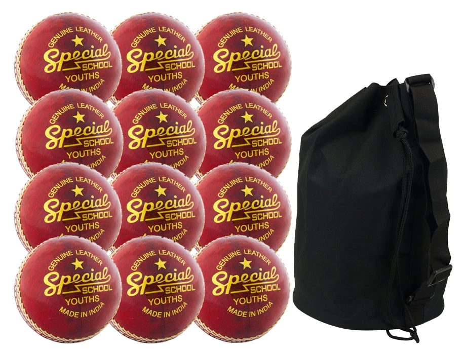 Twelve Pack of Readers Special Schools Youth Cricket Balls with Ball Bag Included. One of the best selling junior cricket balls and perfect for school and club use in match or training sessions.
